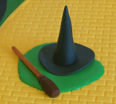 This is such a cute cake and lots of fun going on! Thanks for sharing the step-by-steps. I now understand the edge thing!!! I love the ruby red slippers! I must find that shoe mold! And the melted witch is great. (yes, she is scary!!)