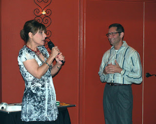It was Connie’s birthday, so we surprised her with a cupcake with a little ceramic squirrel on it. Connie has serious squirrel issues, hence her horrified face. I love the expression on Diane’s face in this one.