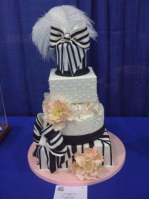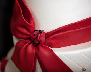 A little bling added to the topper. I also dusted the fondant appliques with super pearl. I brought the cake in 2 sections and finished the assembly at the venue. It was really quite striking and beautiful in person._______________________________________________