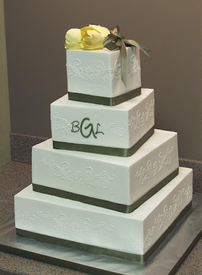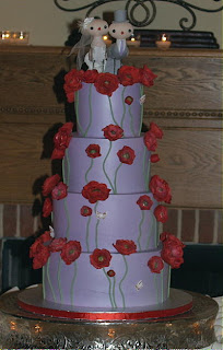 So a few months back a lovely bride brings me this magazine cover for her wedding cake. She wanted it exactly the same, except for the appliques not to be snowflakes since she was having a spring wedding. The magazine did not give credit to the artist, so at the time I did not know it was the amazing Liz Finch of Britain. I have since found that out, and contacted her to thank for such a gorgeous design, and to let her know I copied it. She was very lovely and sharing.