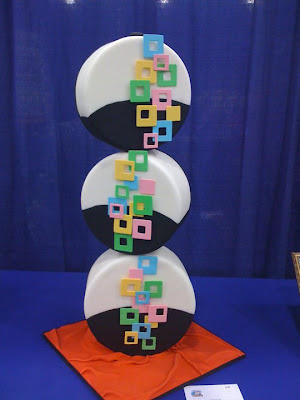 These are the actual class cakes. My brother Michael took the class with me. He is such a cool guy. You have met him before here and here. I think mine are the two on the right. The class was given at a local cake supply shop, and would be the equivalent of Wilton 1 and 2 , I would guess.