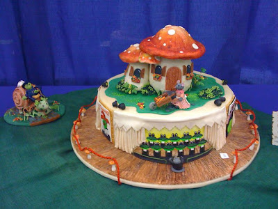 The curlies are made by wrapping strips of fondant around a dowel rod until they are firm enough to hold their shape. Then slide them off, shape as desired, and let dry fully. I demonstrate this in the Topsy Turvy DVD.
