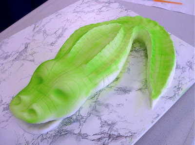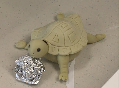 Each piece of colored fondant was stuck to a thin layer of white fondant underneath with a little water. This under layer of fondant was there to ensure that the pieces stayed together and did not fall apart when I picked up the larger finished piece. I kept the whole piece under plastic while I was working on it to prevent it from drying out.