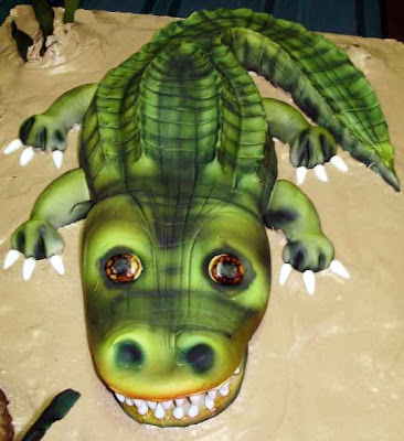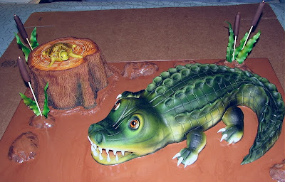 Here is one side piece in place and the top edge trimmed flush with the top of the cake.