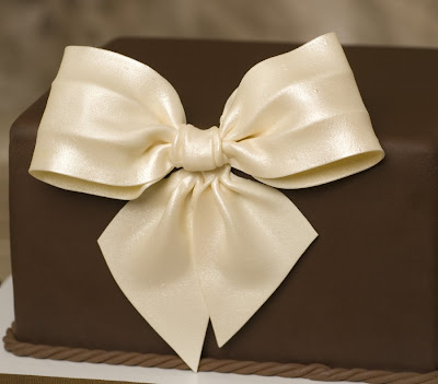 — gumpaste “satin” dress bow and tails for the side of a cake